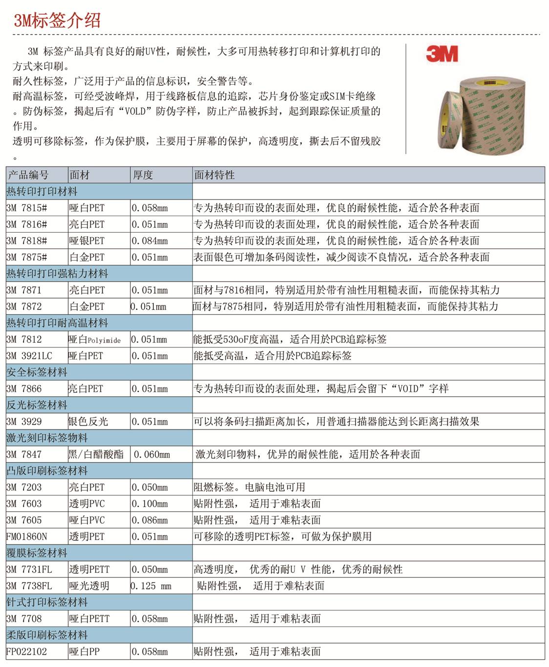 3M 標簽產(chǎn)品具有良好的耐UV性,耐候性,大多可用熱轉(zhuǎn)移打印和計算機打印的方式來印刷。